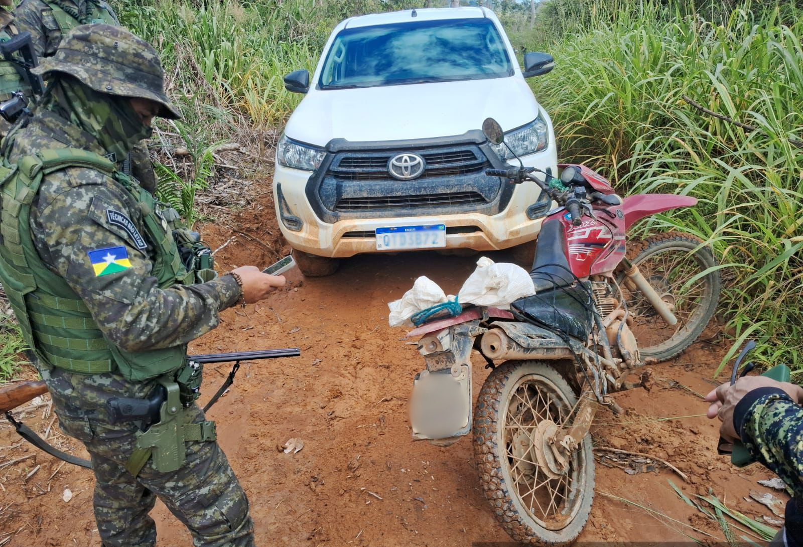 A ação ocorreu no dia 25 de abril de 2026, no interior da unidade de conservação. Durante o patrulhamento, a equipe visualizou um indivíduo que, ao perceber a presença policial, abandonou uma motocicleta e evadiu-se para a área de mata portando uma arma de fogo.