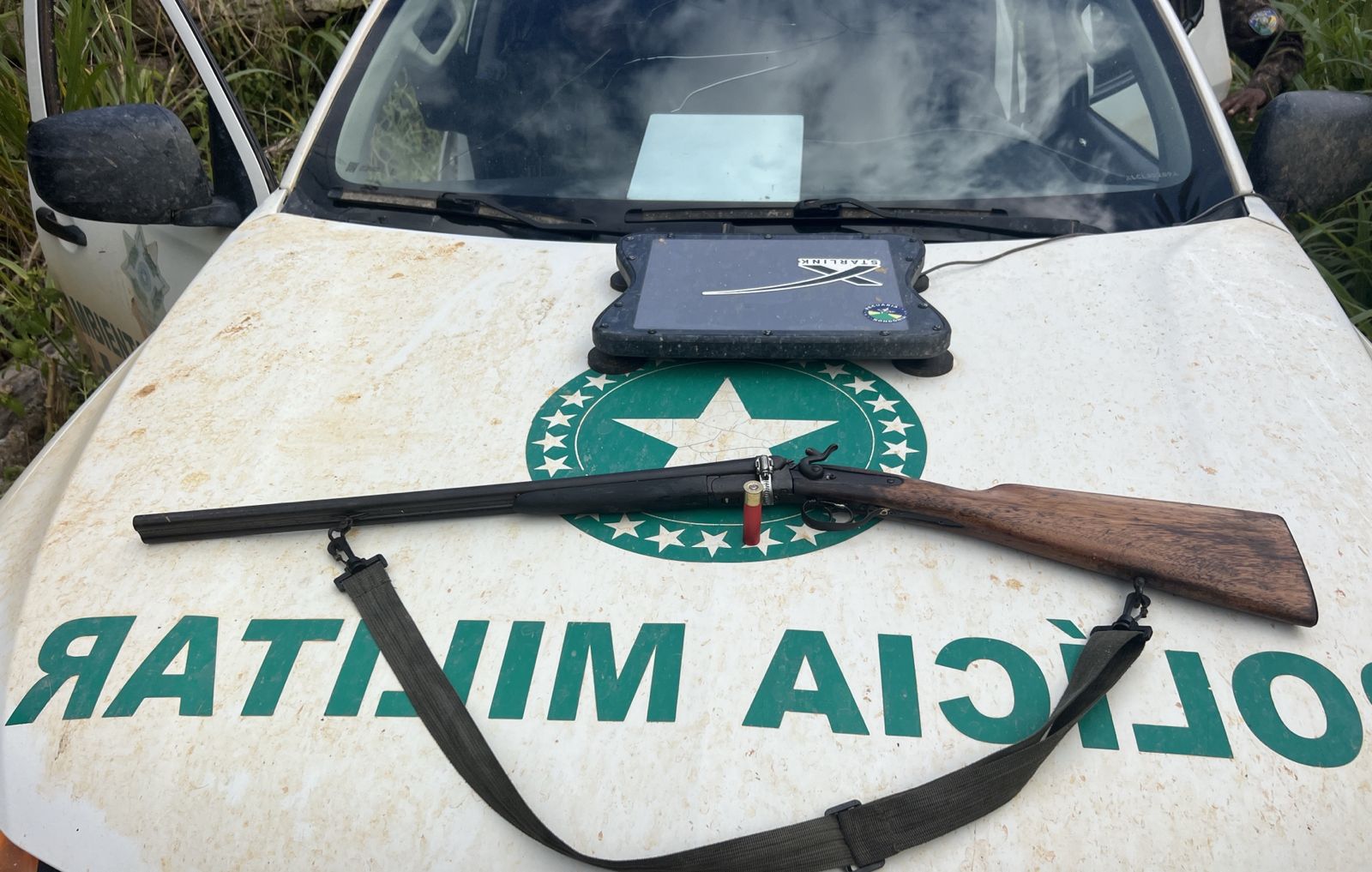 Diante da situação, foi realizada incursão no local, sendo localizada e apreendida uma espingarda, além de cartucho e uma motocicleta abandonada. O suspeito não foi localizado, mesmo após buscas na região.